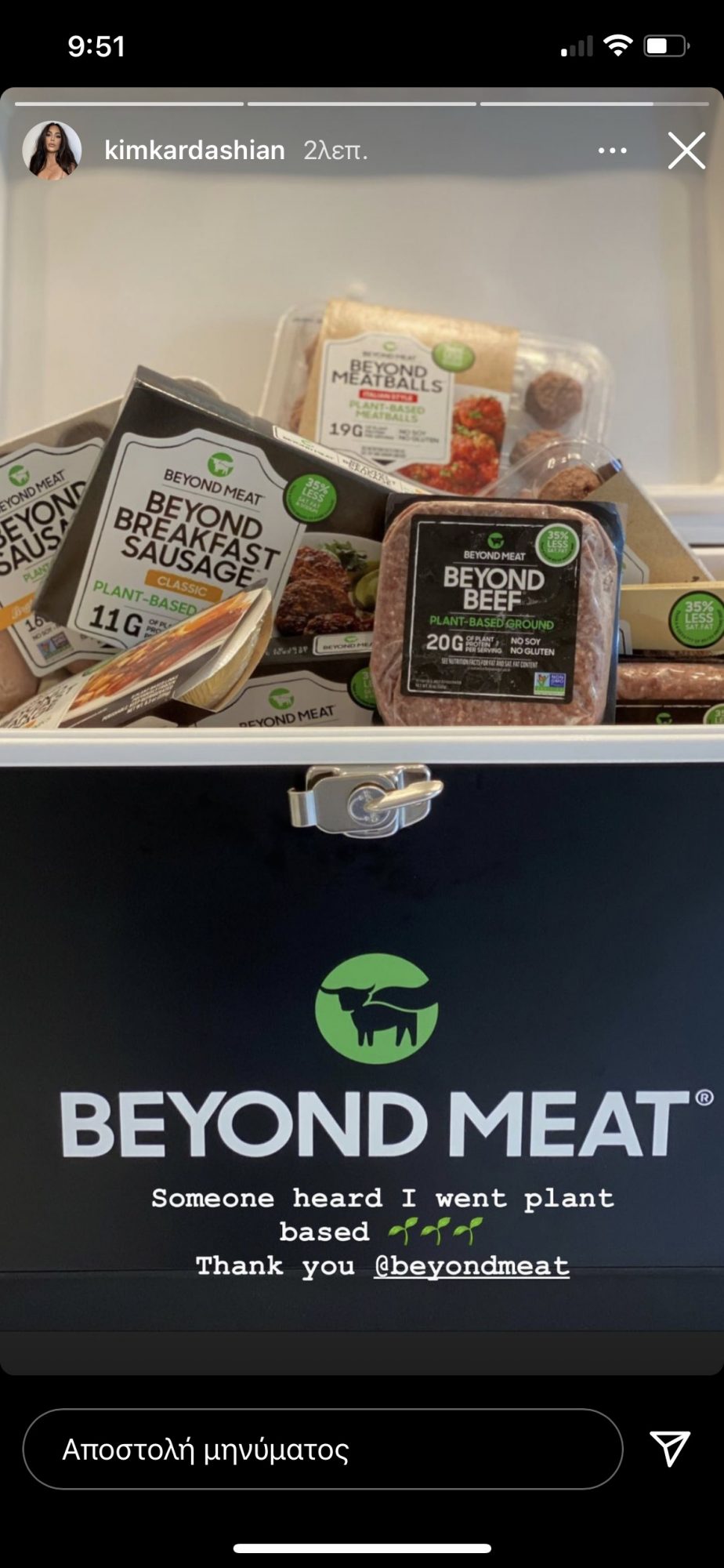 Πιο συγκεκριμένα, η ριάλιτι σταρ ανέβασε ένα story στο οποίο δείχνει ένα πακέτο με υποκατάστατα κρέατος. «Kάποιος άκουσε ότι ξεκίνησα να τρώω plant-based», έγραψε πάνω στη φωτογραφία, μαρτυρώντας πως έκοψε το κρέας και τα γαλακτοκομικά από τη διατροφή της. Κάτι μας λέει ότι αυτή θα είναι η πρώτη από μία μεγάλη σειρά αλλαγών μετά το τέλος του γάμου της με τον Κάνιε.