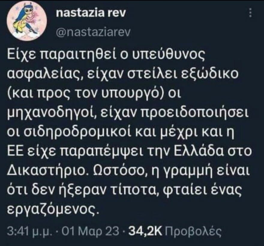 ΡΕ ΚΑΘΙΚΙΑ, 3,5 ΧΡΟΝΙΑ ΕΙΧΑΤΕ ΝΑ ΦΤΙΑΞΕΤΕ ΤΗΝ ΣΥΜΑΝΣΗ ΤΩΝ ΓΡΑΜΜΩΝ.. Ο ΑΧΘΟΦΟΡΟΣ ΣΑΣ ΦΤΑΙΕΙ;;!! Σας παρακαλαγανε οι εργαζομενοι για μονιμες προσληψεις κ χρηματοδοτηση για συντηρηση κ τους γραφατε ολους…Κ τι , να του πουμε κ μπραβο του υπουργου που παραιτηθηκε;;;!! Εγω απορω πως ξυπναει κ κοιμαται απ τις τυψεις..(τις ποιες;; Λεμε τωρα).. Η ΚΥΒΕΡΝΗΣΗ ΠΡΕΠΕΙ ΝΑ ΠΑΡΑΙΤΗΘΕΙ