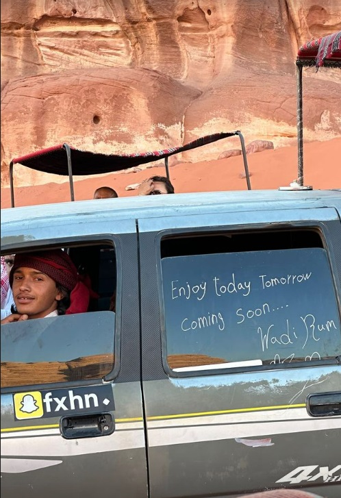 Ιδιαίτερα εντυπωσιακές είναι οι φωτογραφίες από την επίσκεψή τους στην Πέτρα, μνημείο παγκόσμιας κληρονομιάς της UNESCO.