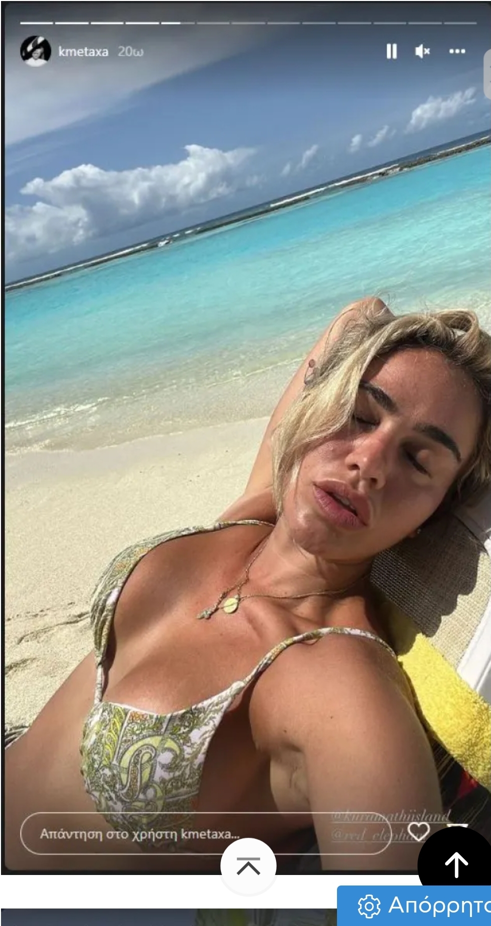 Η Κόνι Μεταξά απολαμβάνει το μήνα του μέλιτος στις εξωτικές Μαλδίβες παρέα με τον σύζυγό της και φυσικά δεν σταματάει να ανεβάζει φωτογραφίες και βίντεο στον προσωπικό της λογαριασμό στο instagram.