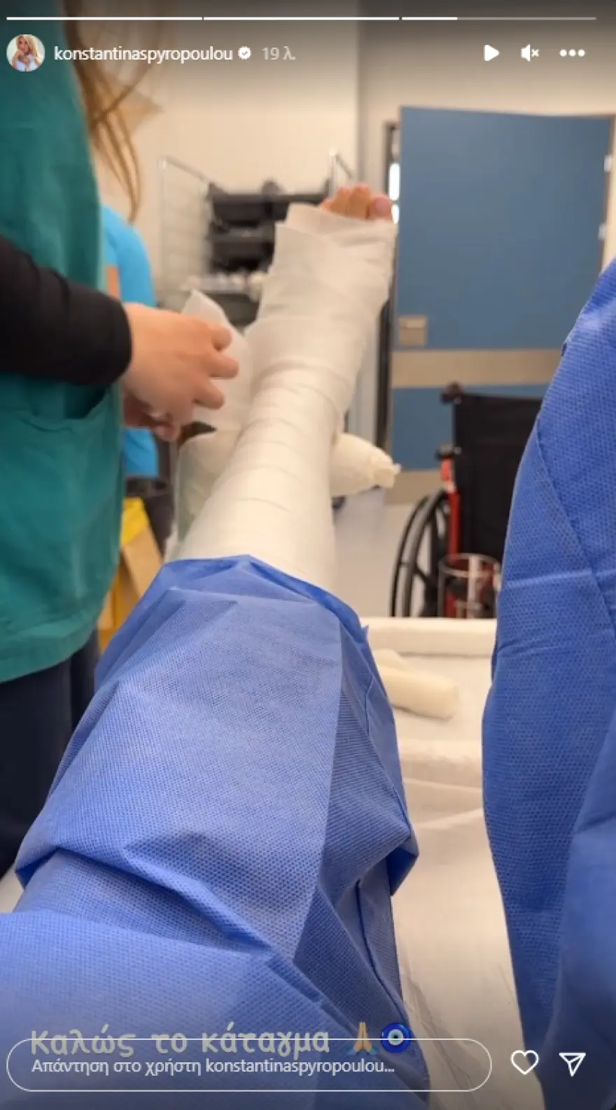 Συγκεκριμένα, ανάρτησε στιγμιότυπο μέσα από το νοσοκομείο, στο οποίο οι γιατροί φαίνονται να δένουν το αριστερό της πόδι.