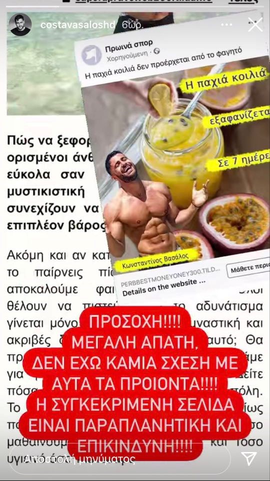Αυτή τη φορά ο Κωνσταντίνος Βασάλος ανακοίνωσε μέσα από τον προσωπικό του λογαριασμό στο Instagram, πως έπεσε θύμα απάτης.