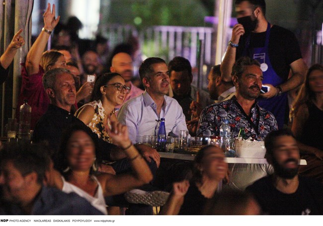 Όπως φαίνεται από τις φωτογραφίες, η σύζυγός του, Σία Κοσιώνη δεν τον ακολούθησε στη βραδινή έξοδό του, ωστόσο ο Κώστας Μπακογιάννης δεν ήταν μόνος. Στην παρέα του ήταν μεταξύ άλλων ο γνωστός οδοντίατρος και πρόεδρος της Τεχνόπολης, Κωνσταντίνος Δέδες.