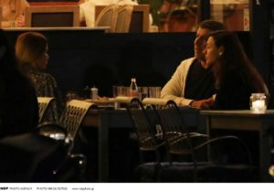 Ο φωτογραφικός φακός απαθανάτισε το ερωτευμένο ζευγάρι σε μία από τις εξόδους του στο κέντρο της Αθήνας όπου απόλαυσαν το ποτό τους. Πάντως, δεν ήταν μόνοι. Στην παρέα τους ήταν και η (ελεύθερη μετά τον οριστικό χωρισμό της από τον Δημήτρη Αλεξάνδρου), Μαρία Καλάβρια