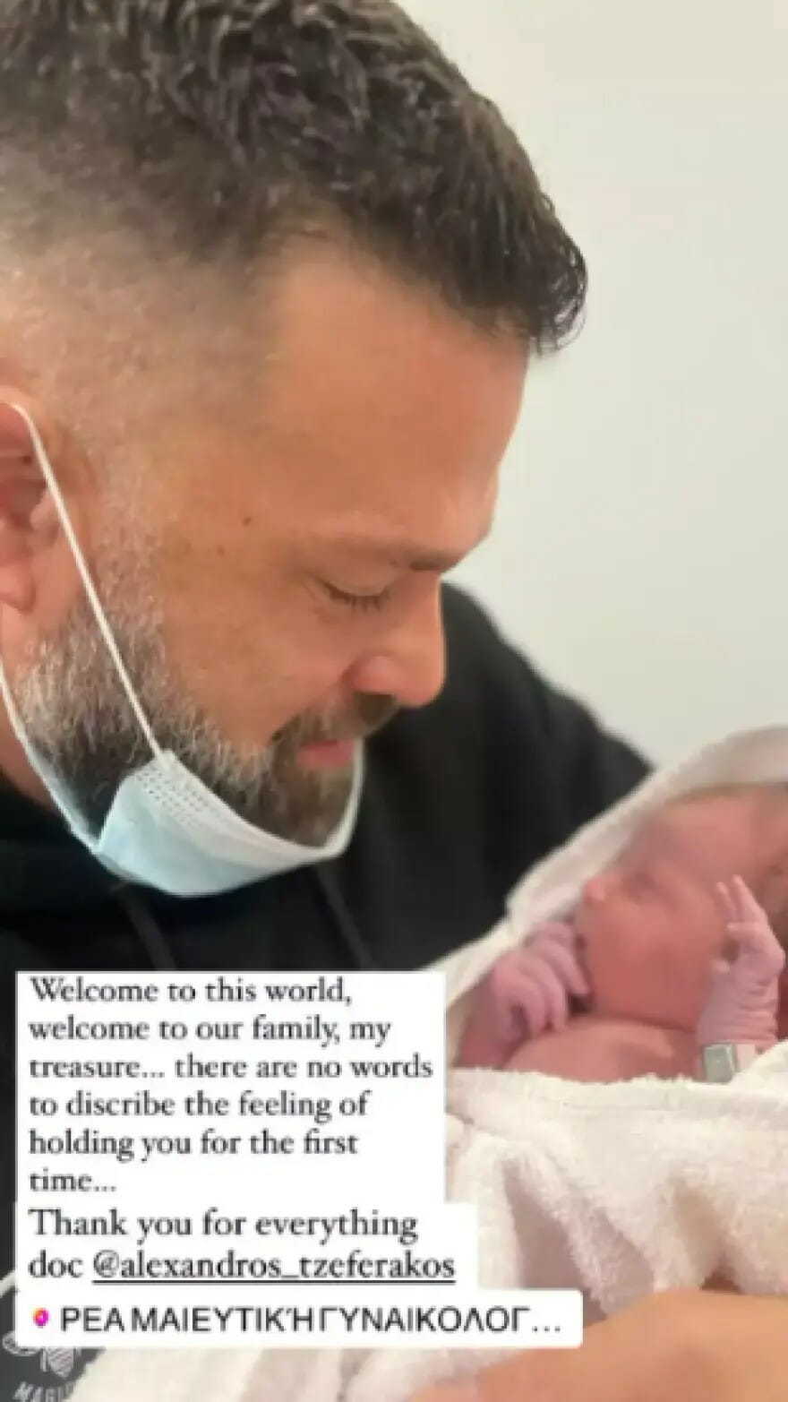 «Καλωσόρισες σε αυτόν τον κόσμο, καλωσόρισες στην οικογένειά μας, θησαυρέ μου… δεν υπάρχουν λόγια να περιγράψω τα συναισθήματά μου που σε κρατώ για πρώτη φορά», έγραψε κάτω από μια φωτογραφία του με το μωρό.