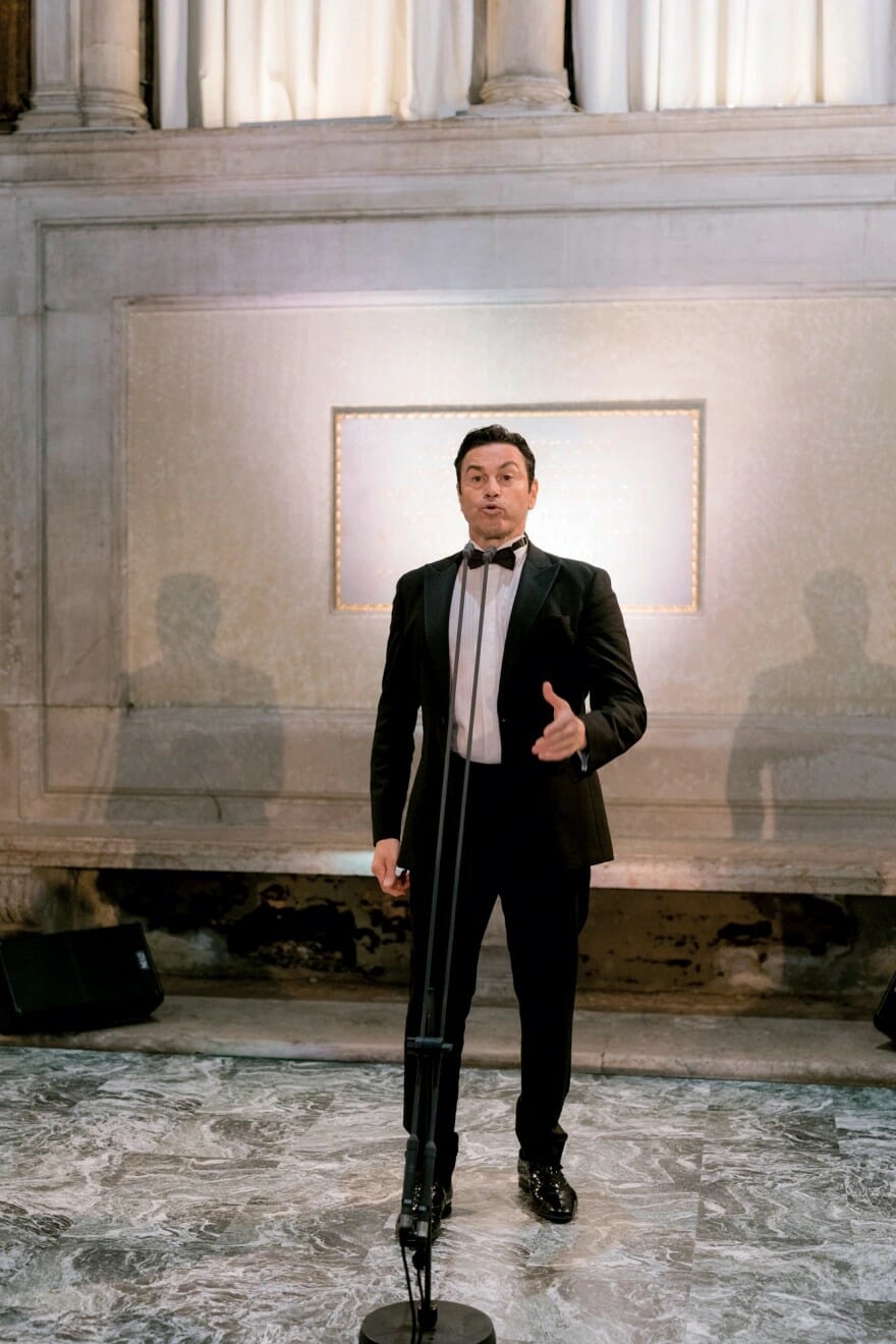 Το βράδυ ακολούθησε δεξίωση στο περίφημο Palazzo Scuola Grande Di San Rocco, που ήταν υπέροχα στολισμένο με συνθέσεις λουλουδιών.