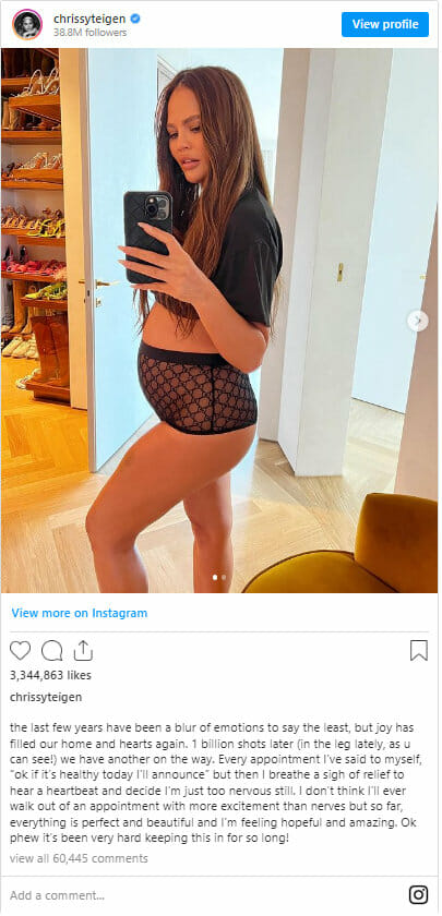 Η Κριστίν Τέιγκεν και ο σύζυγός της τραγουδιστής Τζον Λέτζεντ περιμένουν το τρίτο τους παιδί σχεδόν δύο χρόνια ύστερα από μία άτυχη εγκυμοσύνη.