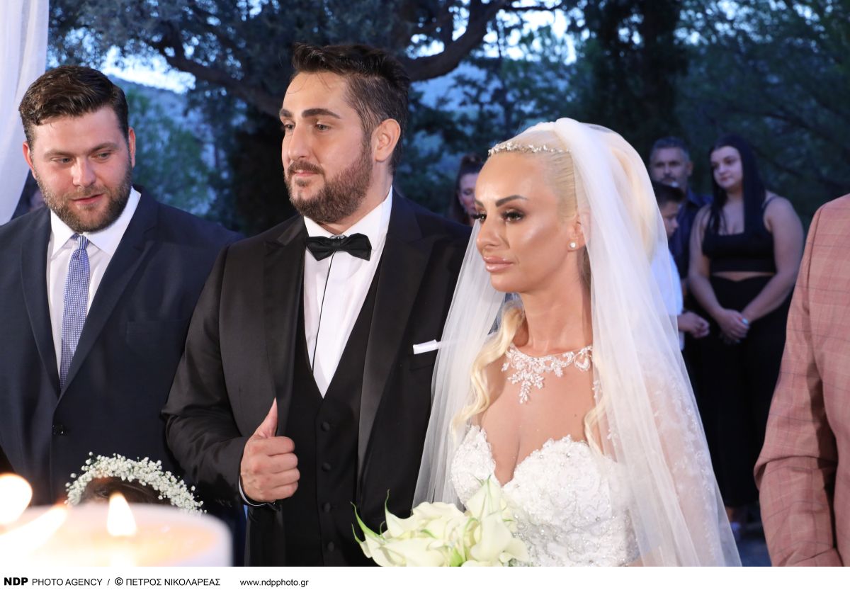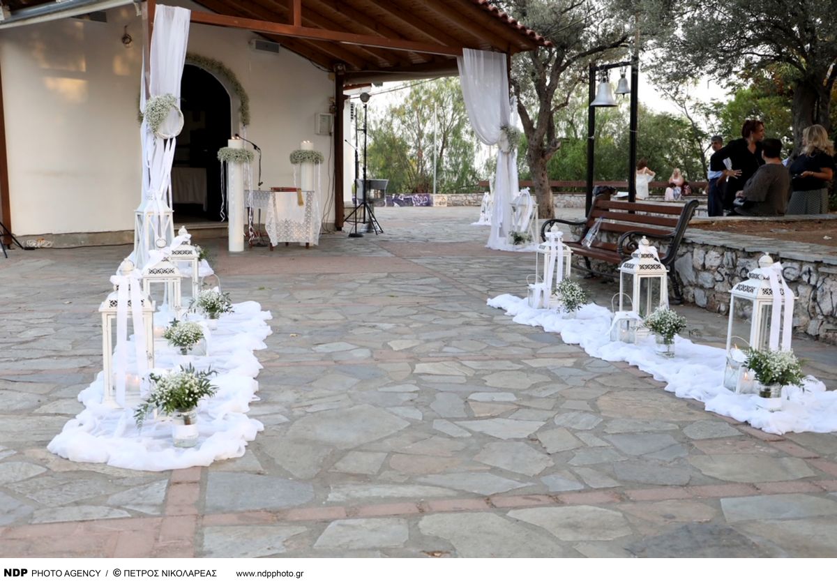 Κοντά στους νεόνυμφους βρέθηκαν φίλοι και συγγενείς για να τους ευχηθούν.