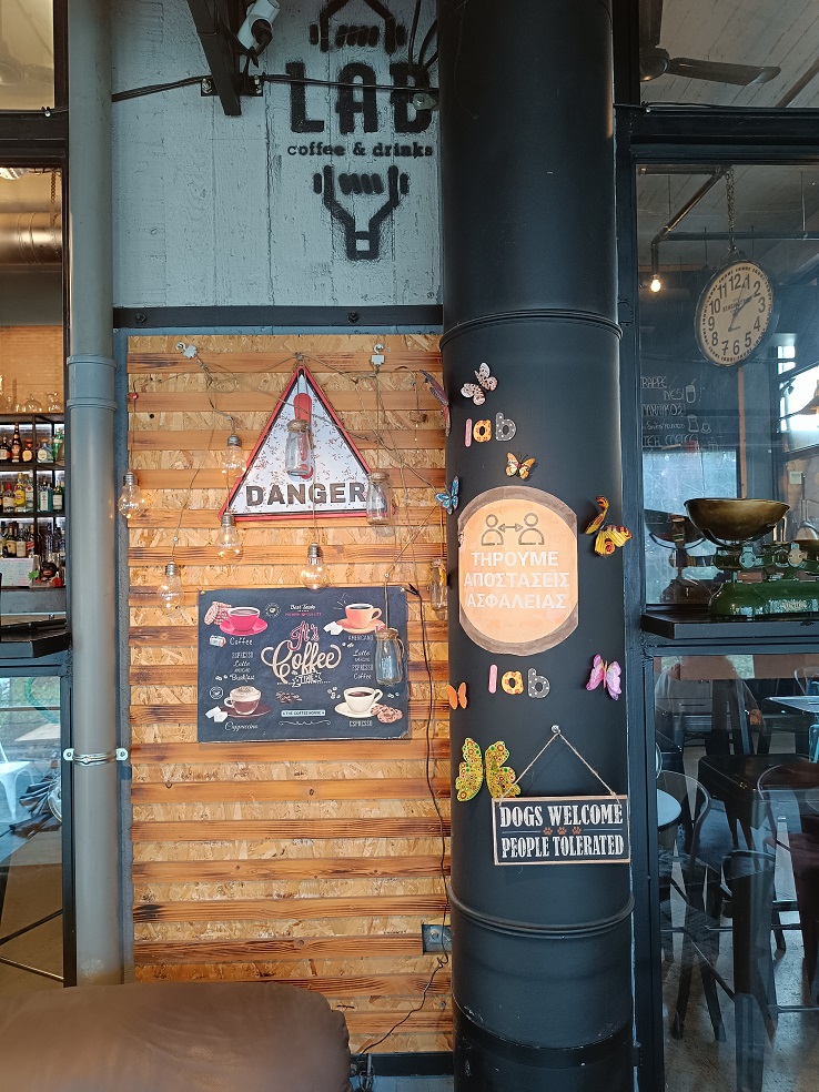 Πριν τη δουλειά, ή αν θέλεις να χαλαρώσεις, κάνοντας ένα διάλειμμα από τη δουλειά ή τα ψώνια σου, το Lab Coffee n’ Drinks σε περιμένει. Εκτός από καφέ και ροφήματα, μπορείς να κάνεις lunch break και να φας τοστ, ομελέτες, πίτσα ή club sandwich.