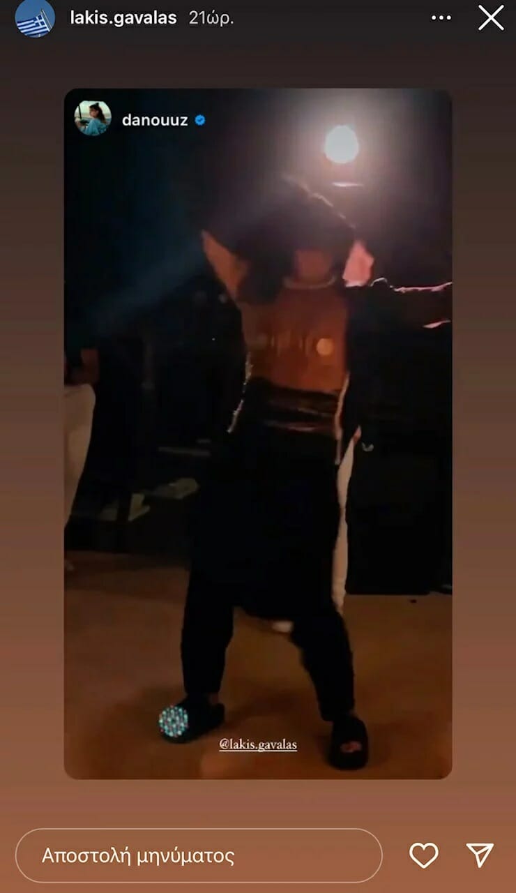 Φορώντας μαύρο outfit με χρυσά κοσμήματα ο Λάκης Γαβαλάς έδειχνε να το καταδιασκεδάζει ενώ χόρεψε ξέφρενα με τη Δανάη Παππά, που λατρεύει επίσης τον χορό.