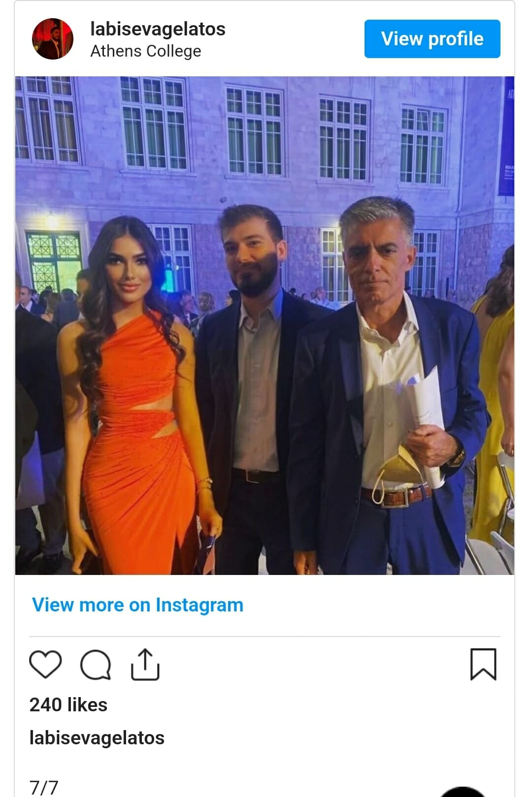 Ανάρτηση για την αποφοίτηση της αδερφής του έκανε κι ο Λάμπης Ευαγγελάτος ο οποίος αρκέστηκε ένα μικρό κείμενο το οποίο έγραφε 7 στα 7 αναφερόμενος στην επιτυχία της αδερφής του κατά την αποφοίτηση από το κολέγιο της Αθήνας