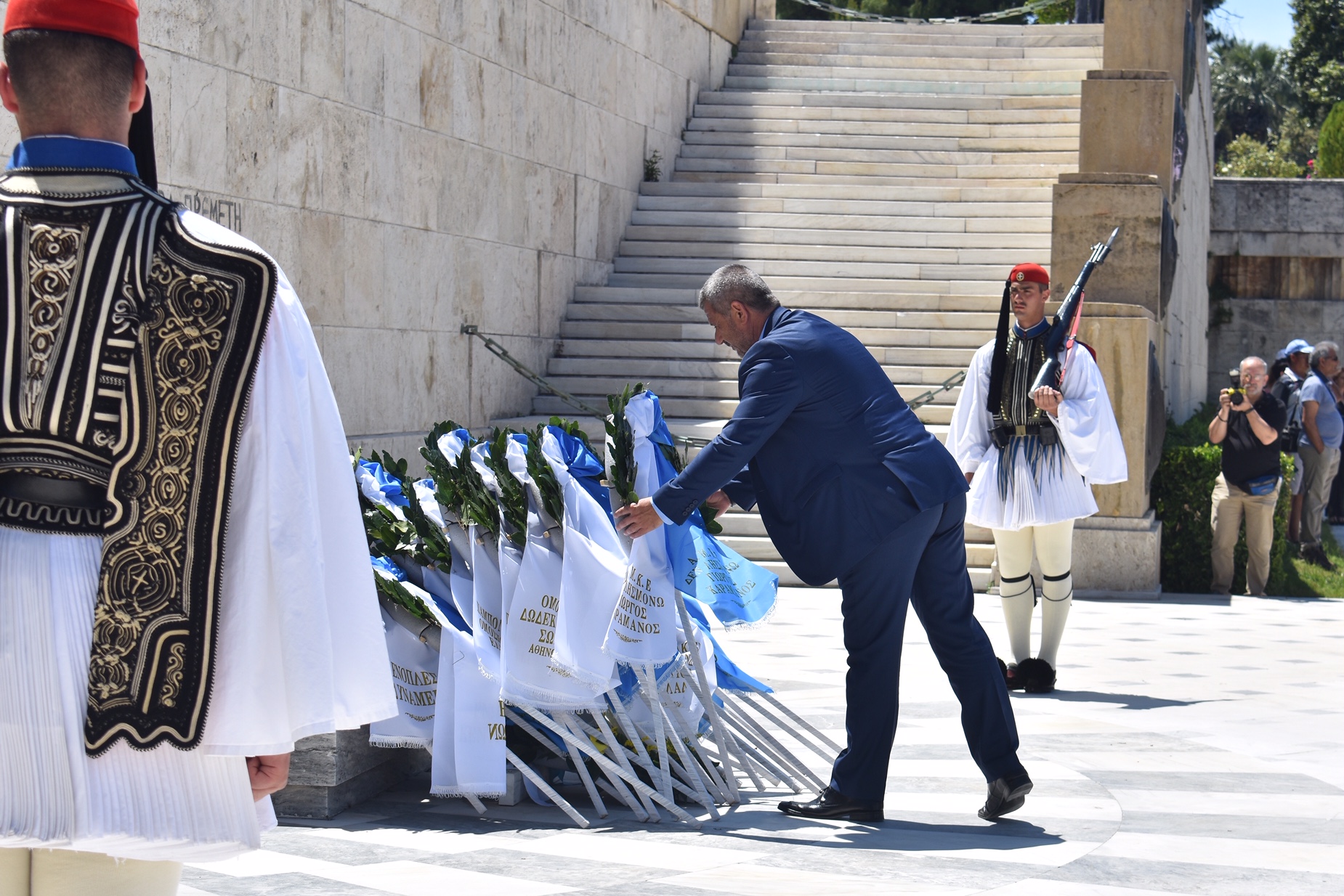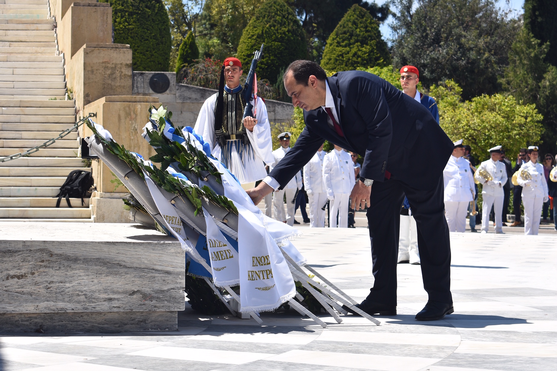 Η εκδήλωση ξεκίνησε με την επιμνημόσυνη δέηση στον Ιερό Μητροπολιτικό Ναό Αθηνών και κορυφώθηκε με την κατάθεση στεφάνων στον Άγνωστο Στρατιώτη.