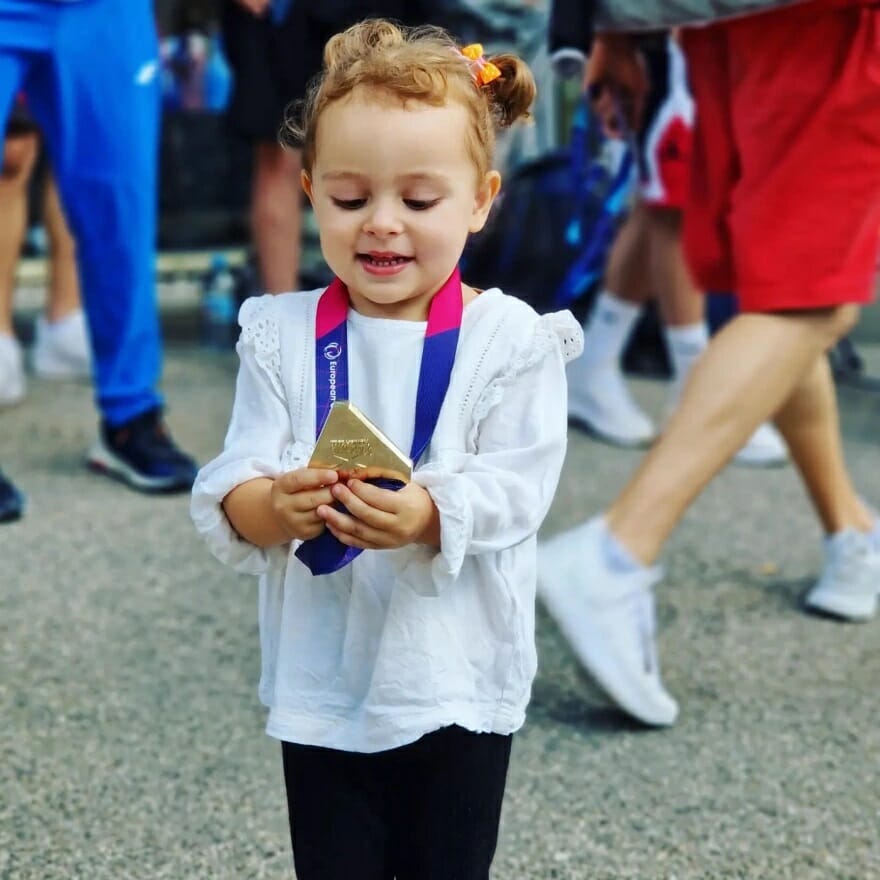 Μέσα από το προφίλ της στο Instagram, η Βασιλική Μιλλούση ανάρτησε δύο φωτογραφίες, στις οποίες οι γονείς και οι κόρες τους ποζάρουν χαμογελαστοί κρατώντας το χρυσό μετάλλιο. Στη μία από τις εικόνες μάλιστα, η μεγαλύτερη κόρη του ζευγαριού, Σοφία, έχει πάρει το μετάλλιο του πατέρα της και το περιεργάζεται αφού το έχει φορέσει στον λαιμό της.