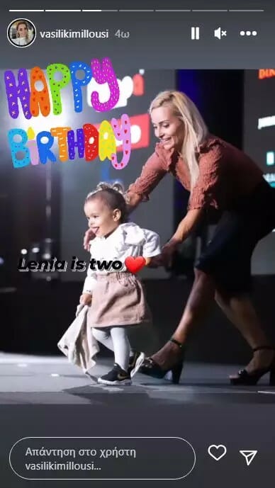 Στιγμιότυπα της γιορτινή ημέρας δημοσίευσε και η Βασιλική Μιλλούση στον λογαριασμό της στο instagram εκφράζοντας με τη σειρά της δημοσίως την αγάπη της και τις ευχές της για τα γενέθλια της μικρής Λένιας.