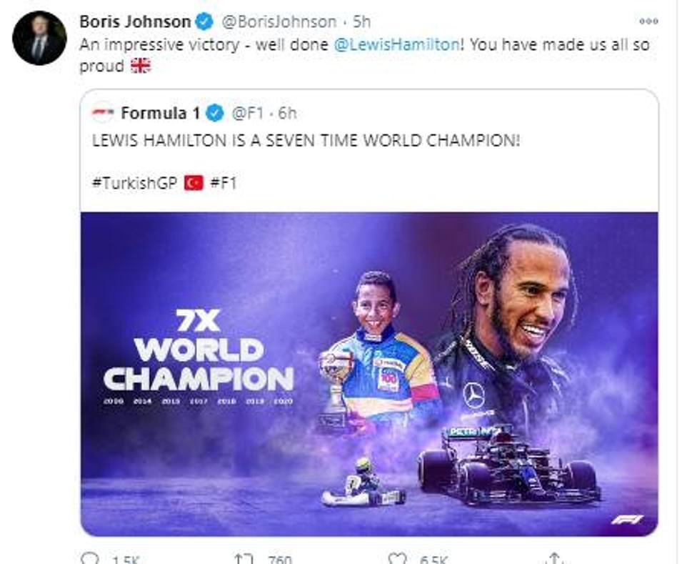 Ο Λόρδος Χέιν, πρώην εκπρόσωπος του υπουργικού συμβουλίου, έχει στείλει ήδη επιστολή στον Μπόρις Τζόνσον για να δοθεί στον Χάμιλτον ο τίτλος του Σερ, όπως έχει συμβεί κατά το παρελθόν και σε άλλους αθλητές που τιμήθηκαν για τα επιτεύγματά τους. Ο ίδιος ο Χάμιλτον δήλωσε γι’αυτό: «Όταν σξκέφτομαι αυτή την τιμή, σκέφτομαι ανθρώπους σαν τον παππού μου που υπηρέτησε στον πόλεμο και τους ανώνυμους ήρωες στα νοσοκομεία»