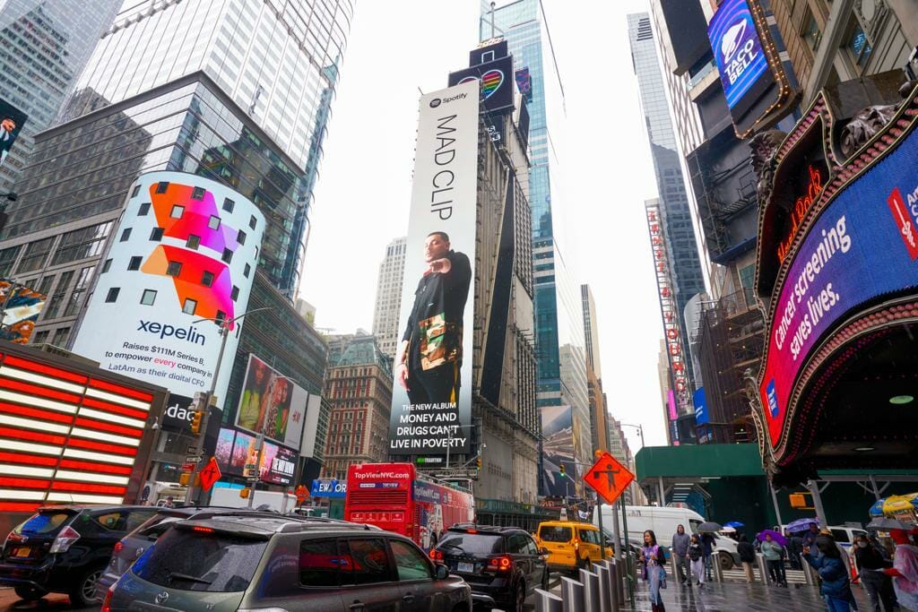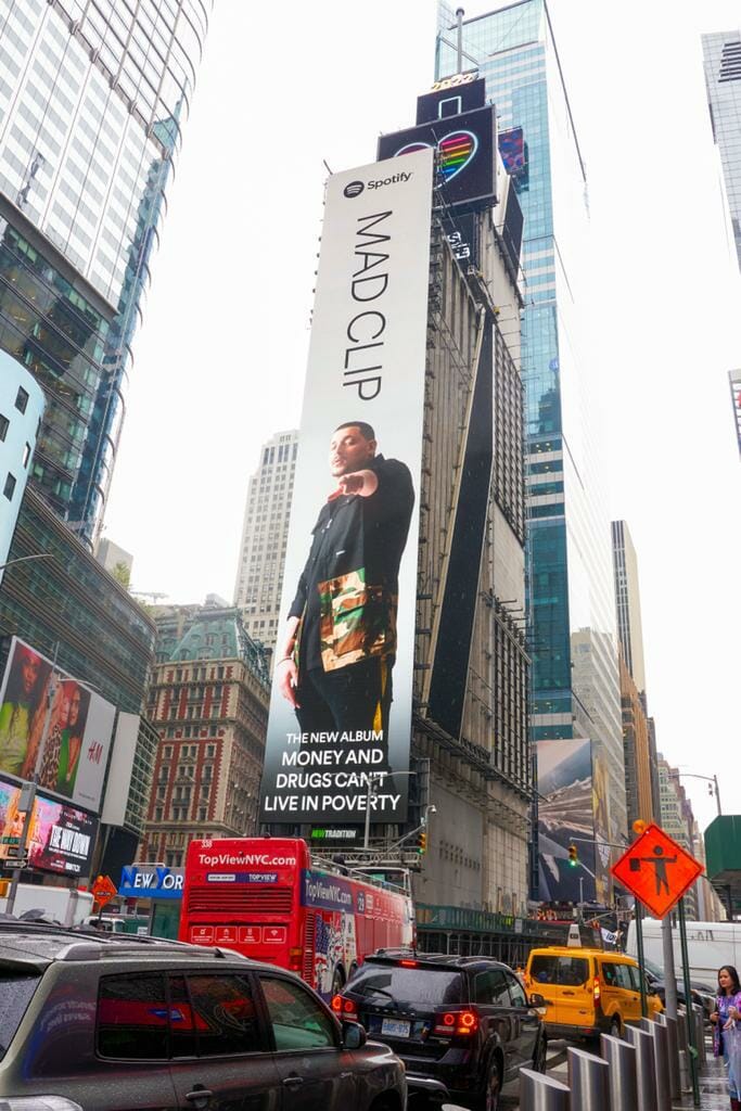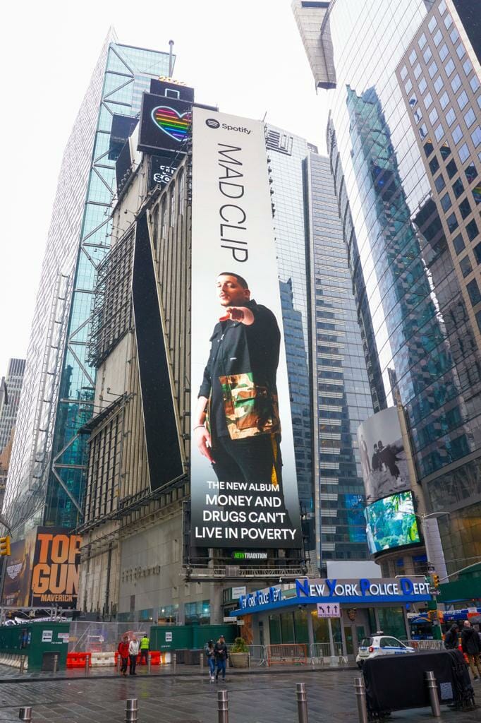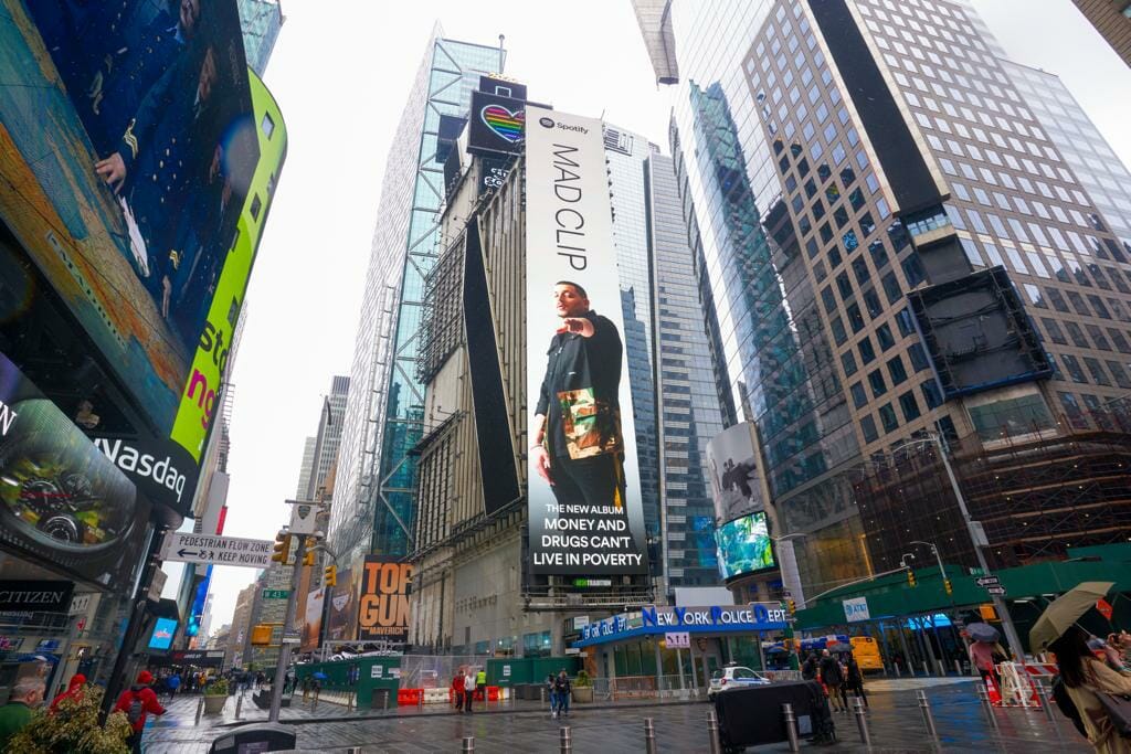 Ο Mad Clip, ο hardest working man της ελληνικής rap/ trap σκηνής με τις αλλεπάλληλες μεγάλες επιτυχίες, που συνεχίζει να ζει μέσα από τα τραγούδια του, φιγουράρει στη φημισμένη Times Square της Νέας Υόρκης!