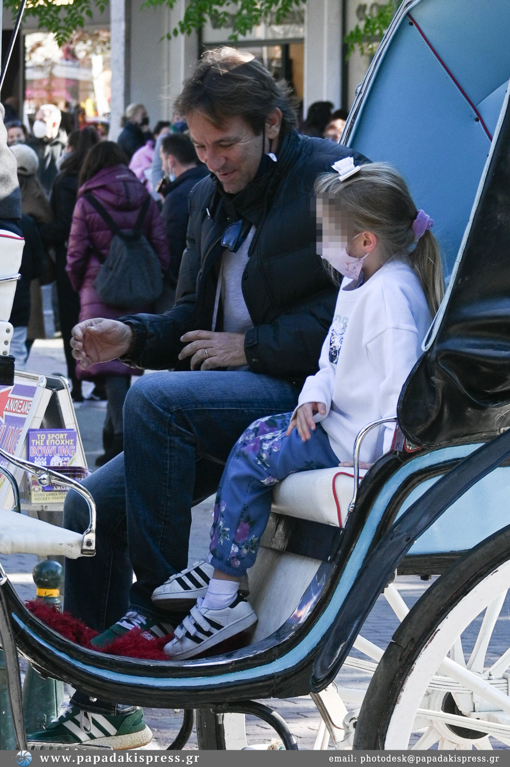 Μάκης Παντζόπουλος: Βόλτα με την μικρή Μαρίνα χωρίς την Μενεγάκη (φωτογραφίες)