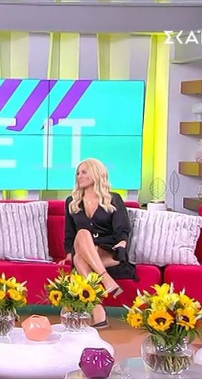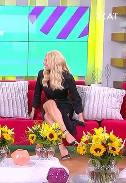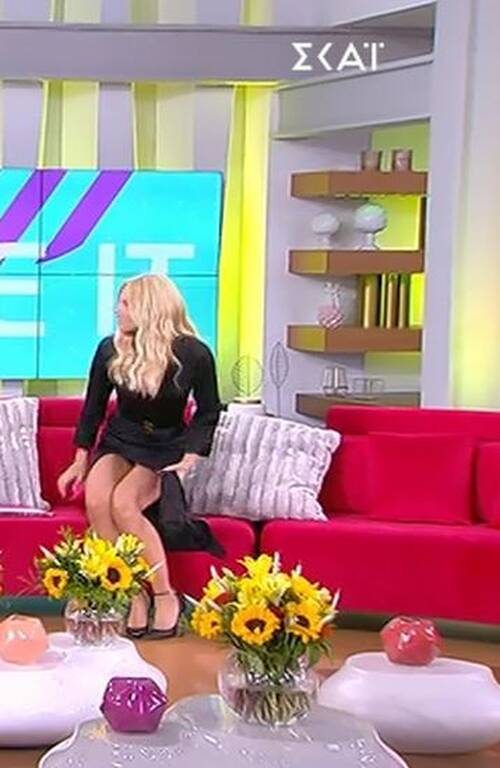 Η παρουσιάστρια φόρεσε ένα μαύρο σατέν φόρεμα που είχε δύο σκισίματα και όταν έκατσε στον καναπέ της για να συνομιλήσει με τη Χριστίνα Σούζη τη μετεωρολόγο μας άφησε άφωνους με τα καλλίγραμμα πόδια της!