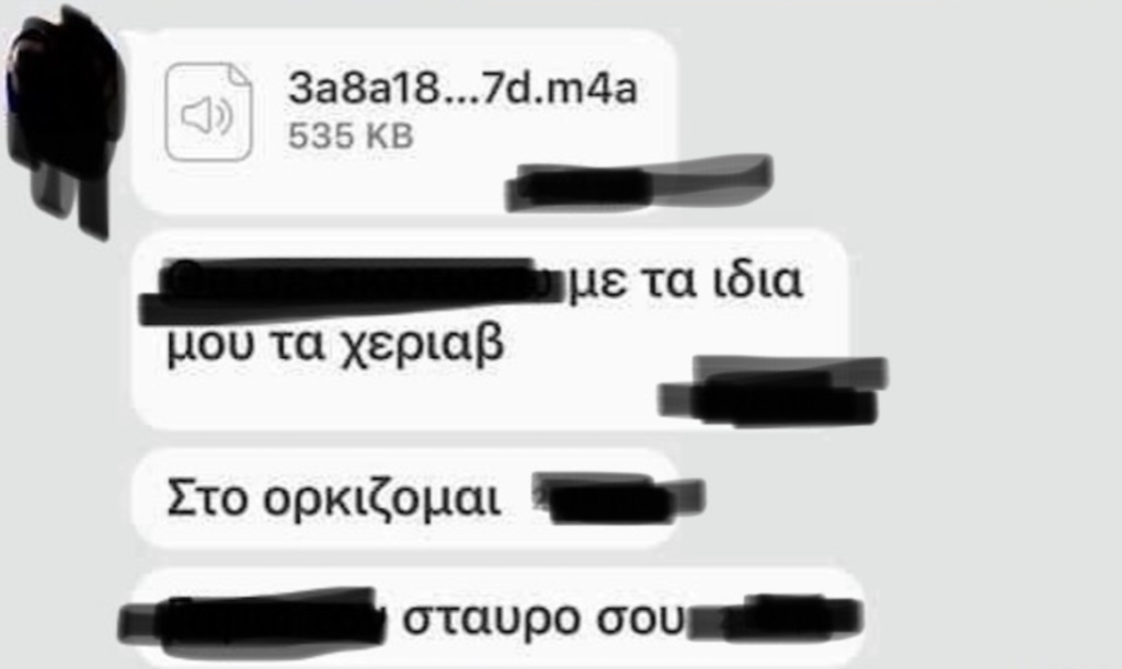 Σύμφωνα με την καταγγέλλουσα, την απειλεί με γραπτά μηνύματα, τα οποία η ίδια έχει καταθέσει στη μηνυτήρια αναφορά της. Ενώ και η ίδια απαντά με υβριστικό τρόπο στον καταγγελλόμενο, γεγονός που επιβεβαιώνει ότι το κλίμα μεταξύ των δυο πρώην συντρόφων, πριν το περιστατικό, ήταν εκρηκτικό.