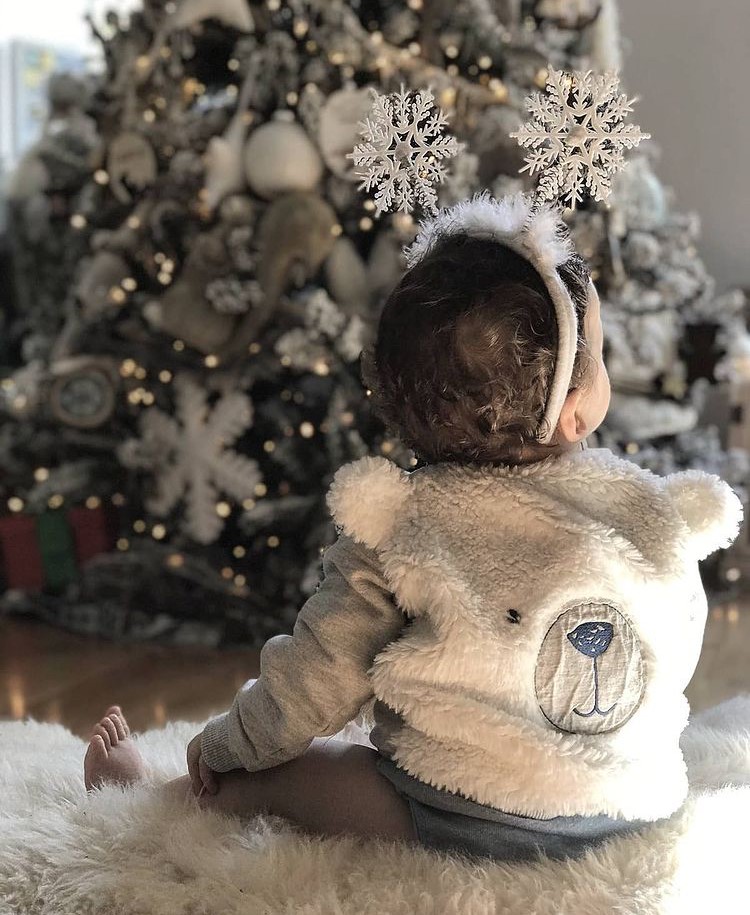 Είναι η πρώτη φορά που αντίκρυσε το Χριστουγεννιάτικο δέντρο ο μικρούλης της κι εκείνη απαθανάτισε τη στιγμή για «την αιχμαλωτίσει για πάντα στην καρδιά της», όπως έγραψε στον προσωπικό της λογαριασμό στο Instagram. Ο μικρός φορούσε στο κεφαλάκι του μια Χριστουγεννιάτικη στέκα με νιφάδες χιονιού στην κορυφή σαν αυτές που διακοσμούσασαν και το Χριστουγεννιάτικο δέντρο της παρουσιάστριας.