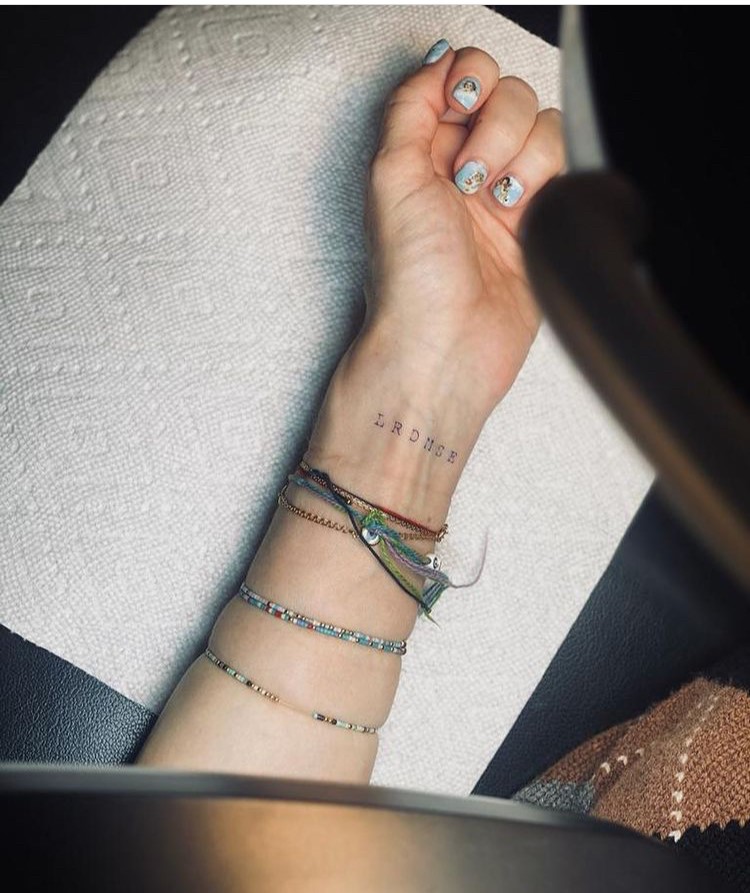 Αποφάσισε ότι ήρθε η ώρα να το κάνει κι αυτό και δεν έχασε στιγμή. Η οικογενειακή συγκέντρωση την ημέρα των Ευχαριστιών ήταν η αφορμή, αφού όπως βλέπουμε στις φωτογραφίες στην εσωτερική πλευρά του καρπού της πλέον θα είναι χαραγμένα τα γράμματα: LRDMSE. Δηλαδή: Λούρδη, Ρόκο, Ντέιβιντ, Μέρσι, Στέλλα κι Έστερ τα ονόματα των αγαπημένων της παιδιών.