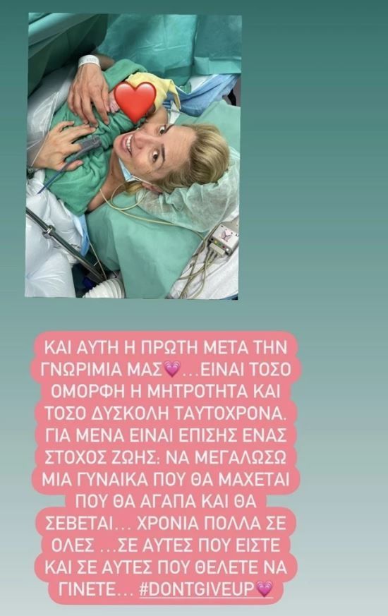 Στη δεύτερη φωτογραφία, είχε ήδη γεννήσει τη μικρούλα και μόλις της είχε κάνει την πρώτη τους αγκαλιά: