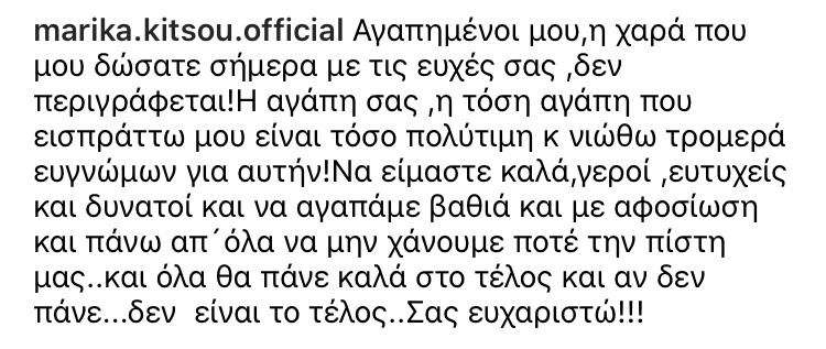 Μαρία Κίτσου: ευχαρίστησε τους θαυμαστές της για τις ευχές τους