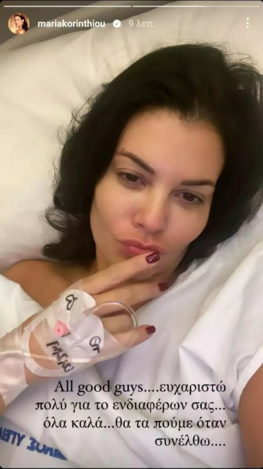 Η ίδια, το απόγευμα της Τρίτης δημοσίευσε φωτογραφία της από το κρεβάτι του νοσοκομείου.