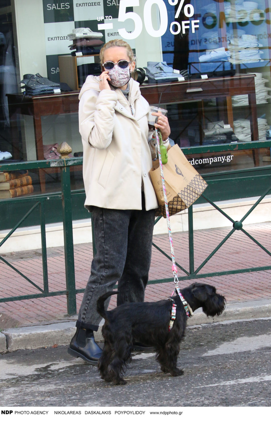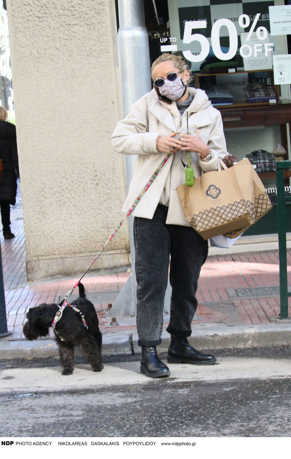 Με casual εμφάνιση και τηρώντας όλα τα μέτρα προστασίας η Μπεκατώρου έκανε και κάποιες αγορές που χρειαζότα.