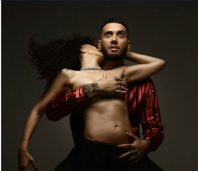 Πιο συγκεκριμένα, η Μαρία Σολωμού ποζάρει ημίγυμνη στην αγκαλιά του Mente Fuerte, με το τραπερ να καλύπτει το στήθος της και την ηθοποιό να του δαγκώνει το αυτί.