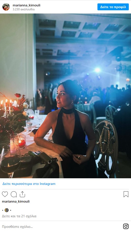 Η Μαριάννα Κιμούλη διαθέτει έναν ενεργό λογαριασμό στο Instagram όπου μοιράζεται κυρίως στιγμιότυπα από την επαγγελματική της ζωή αλλά και κάποια από την προσωπική. Μέχρι στιγμής μετράει 2.752 ακολούθους.