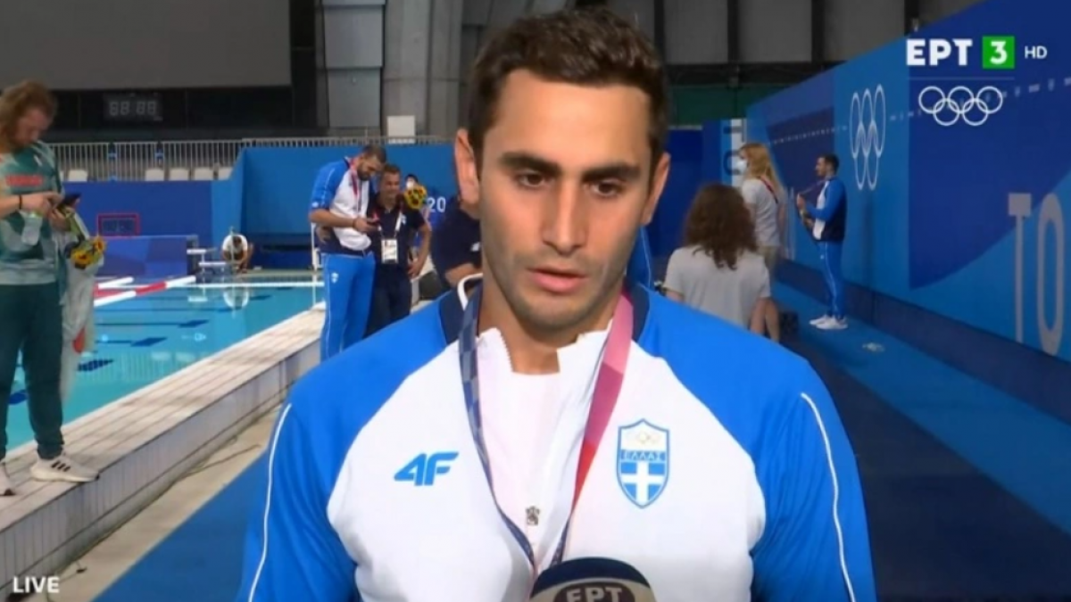 «Είμαστε ευλογημένοι που βρισκόμαστε εδώ. Είναι πολλά τα συναισθήματα και θέλω να σας τα μεταφέρω. Οι Ολυμπιακοί Αγώνες είναι το μεγαλύτερο αθλητικό γεγονός, η μεγαλύτερη γιορτή. Δεν μπορούμε να γιορτάσουμε με την καρδιά μας γιατί στην Ελλάδα έχουμε πόλεμο. Είναι κάτι πολύ οδυνηρό που μας έχει επηρεάσει όλους. Αυτό το μετάλλιο δεν ανήκει μόνο σε εμάς, ανήκει σε όλους τους Έλληνες, που αγωνίζονται αυτή τη δύσκολη στιγμή. Στους Έλληνες που βοηθούν, στους Έλληνες πυροσβέστες, στους Έλληνες που βοηθούν τον συνάνθρωπό τους που έχει πρόβλημα.
