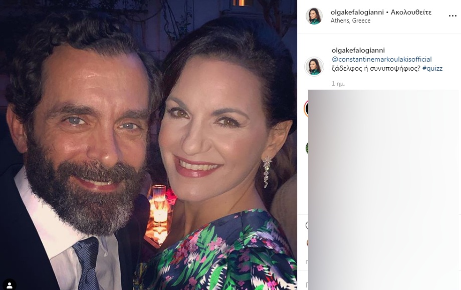 Στο instagram δημοσιεύτηκαν πολλές φωτογραφίες αλλά αίσθηση έκανε το… κουίζ της Όλγα Κεφαλογιάννη στην κοινή φωτογραφία της με τον Κωνσταντίνο Μαρκουλάκη! Η Όλγα έγραψε: @constantinemarkoulakisofficial ξάδελφος ή συνυποψήφιος? #quizz. Όπως είναι γνωστό, ο ηθοποιός είναι σε σχέση εδώ και αρκετό καιρό με τη Χρυσή Βαρδινογιάννη και απ’ ό,τι αντιληφθήκαμε απ’ το ποστ της Όλγας πάνε για γάμο ολοταχώς με τη Χρυσή.