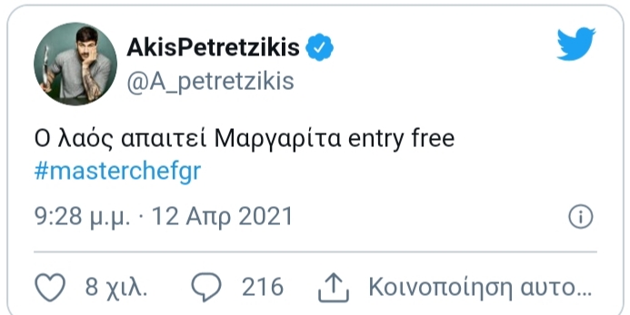 Ένα του tweet για το ΜasterChef αρκεί για να προκαλέσει πανικό. Πετρετζίκης είναι αυτός…