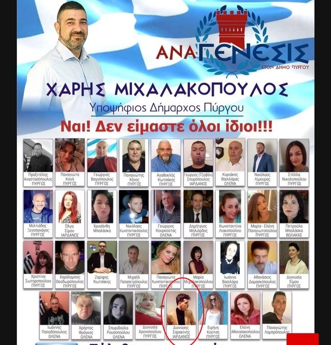 Συγκεκριμένα, το 2019 ο Διονύσης είχε κατέβει ως υποψήφιος δημοτικός σύμβουλος με την παράταξη «Αναγένεσις» του Χάρη Μιχαλακόπουλου, στον Δήμο Πύργου.