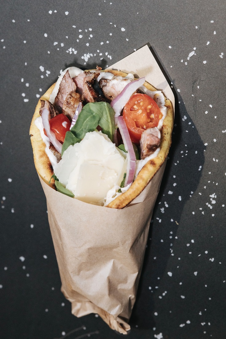 Τα πιάτα, όπως το μπιφτέκι γάλακτος σε αφράτη πίτα με πατάτες και τζατζίκι, αποτελούν σίγουρη επιλογή, ενώ οι premium εκδοχές με Black Angus και τυλιχτό Iberico θα σας καταπλήξουν με την πλούσια γεύση τους.