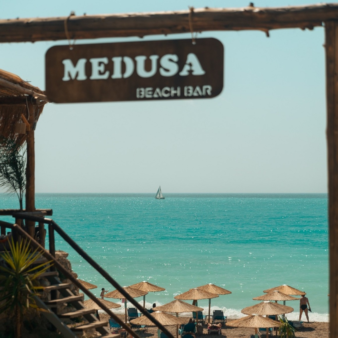 Απολαύστε την πανέμορφη παραλία Γιαλός και τις ατελείωτες στιγμές διασκέδασης στο Medusa Beach Bar.