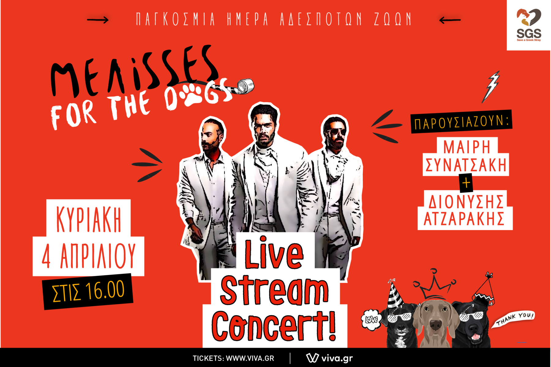 Οι MEΛΙSSES, το nο1 συγκρότημα της Ελλάδας, ενώνουν τις δυνάμεις τους με τη Save a Greek Stray στο «MEΛISSES for the dogs», μια καταπληκτική live stream συναυλία από τον όμορφο χώρο του καταφυγίου της Save a Greek Stray.