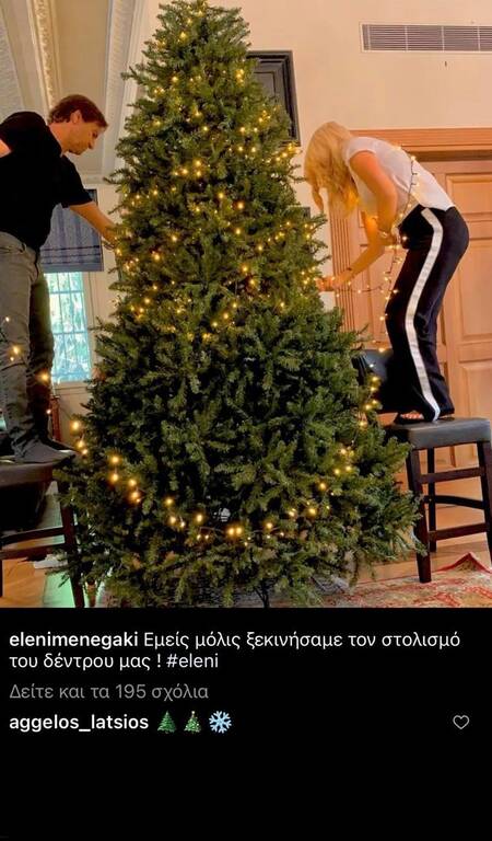 Κάτω από την ανάρτησή της ανέβασε emojis, δύο χριστουγεννιάτικα δέντρα και μία νιφάδα χιονιού, συμμετέχοντας, έστω και εξ αποστάσεως σε αυτή την οικογενειακή ιεροτελεστία που έχει καθιερώσει η Ελένη Μενεγάκη σε ό,τι αφορά τον στολισμό του χριστουγεννιάτικου δέντρου στο σπίτι.