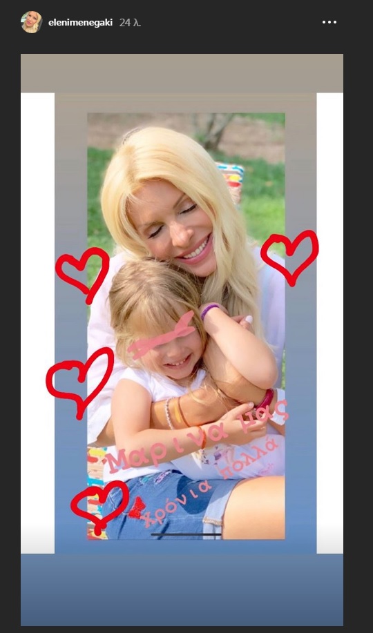 Η παρουσιάστρια, λοιπόν, θέλησε να ευχηθεί και διαδικτυακά «χρόνια πολλά» στην πριγκίπισσά της. Έτσι, δημοσίευσε στα InstaStories της μια κοινή τρυφερή λήψη τους, σχολιάζοντας: «Μαρίνα μας Χρόνια Πολλά».