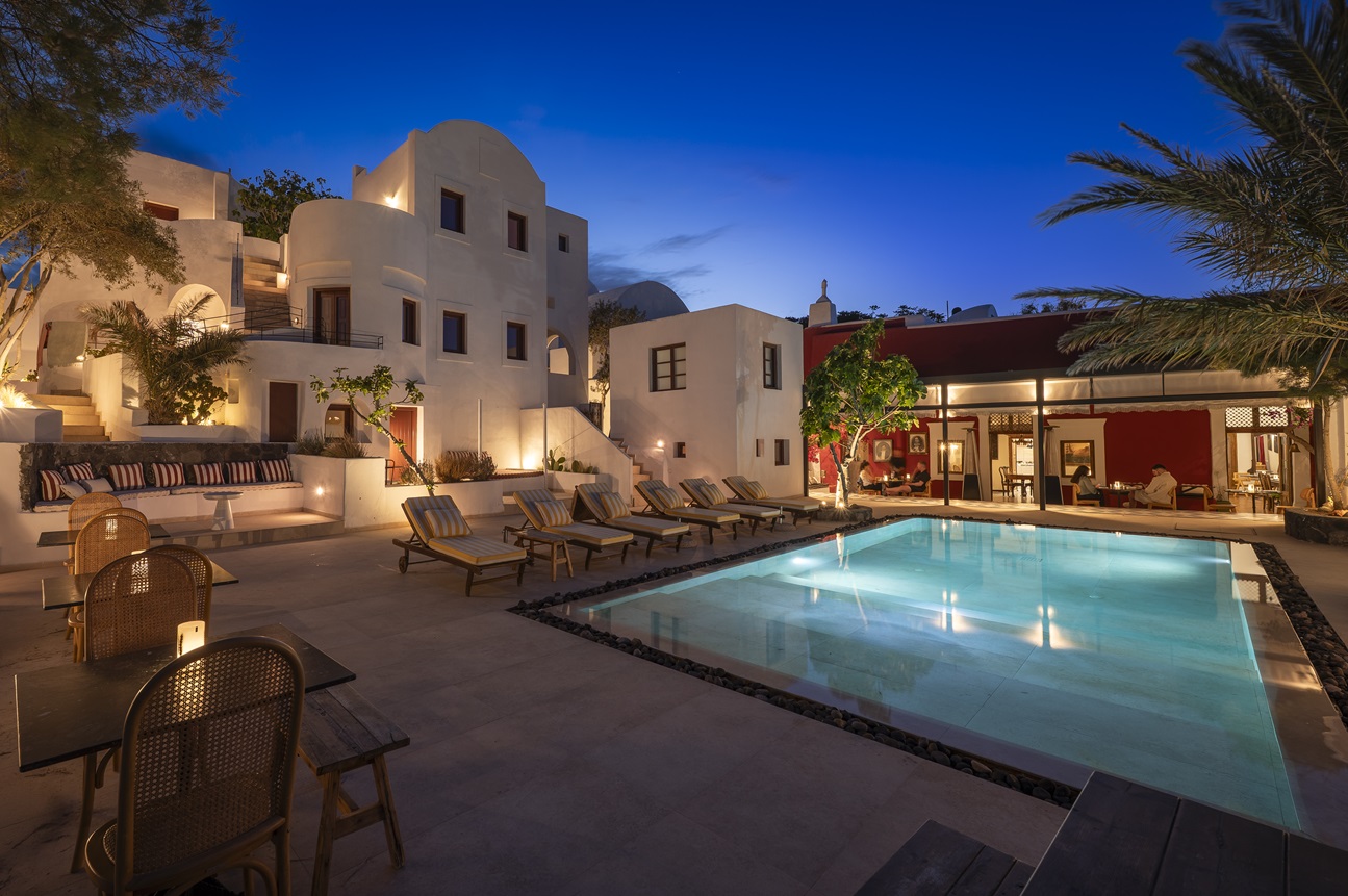 Το Meroviglia Boutique Hotel, ένα ανακαινισμένο βενετσιάνικο αρχοντικό του 19ου αιώνα, συνδυάζει την παραδοσιακή κυκλαδίτικη αρχιτεκτονική με πολυτελείς παροχές, όπως πισίνα και υπηρεσίες μασάζ. Τα δωμάτια και οι σουίτες του διαθέτουν σύγχρονες ανέσεις και εντυπωσιακή θέα στην Καλντέρα, τη θάλασσα ή το χωριό.