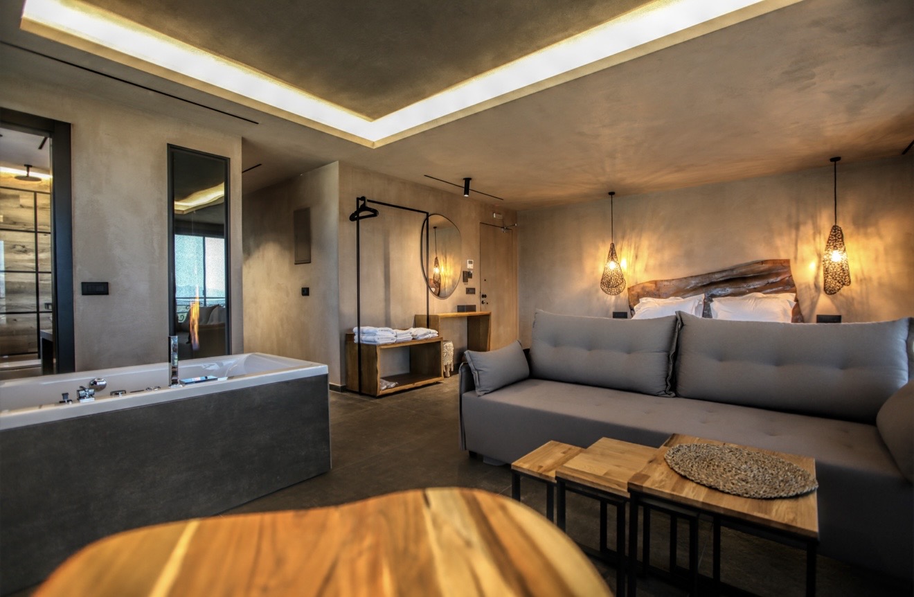 Στο γραφικό χωριό Καστράκι, οι eco‑premium σουίτες μας συνδυάζουν παραδοσιακή αισθητική με μοντέρνες ανέσεις: minimal design, φυσικά οικολογικά υλικά, χαμηλής κατανάλωσης κλιματισμό και ενεργειακά τζάκια  για να νιώσετε άνεση και αρμονία με το περιβάλλον.