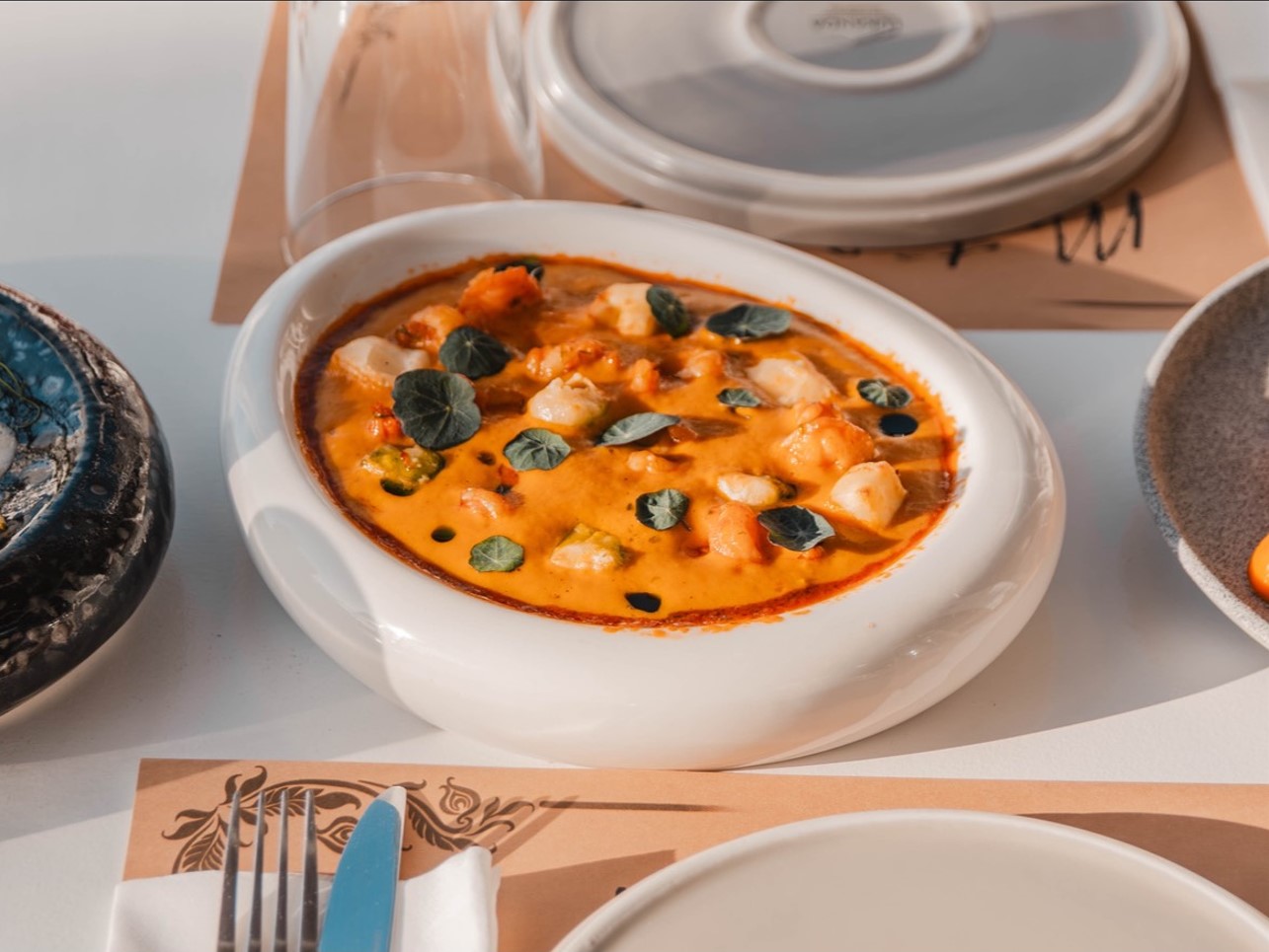 Η κουζίνα του εστιατορίου βασίζεται στη μεσογειακή και θαλασσινή γαστρονομία, με δημιουργικές επιρροές και σύγχρονες τεχνικές. Τα πιάτα ισορροπούν ανάμεσα σε ψάρι, θαλασσινά, κρέας και λαχανικά – πάντα με σεβασμό στην αισθητική και τη νοστιμιά.