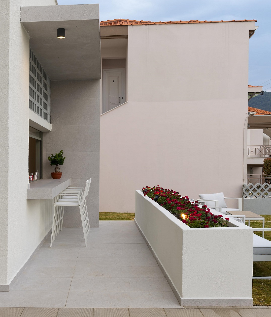 Ένα μοντέρνο, φιλόξενο, μοναδικό κατάλυμα, ιδανικό για αξέχαστη διαμονή στη Θάσο. Χαλαρώστε σε κάποιο από τα πλήρως εξοπλισμένα και καλόγουστα δίκλινα δωμάτια, τα studio ή τα διαμερίσματα, απολαύστε στιγμές δροσιάς στην πισίνα, κάντε μια βόλτα στον κήπο, πιείτε το cocktail σας στο bar.
