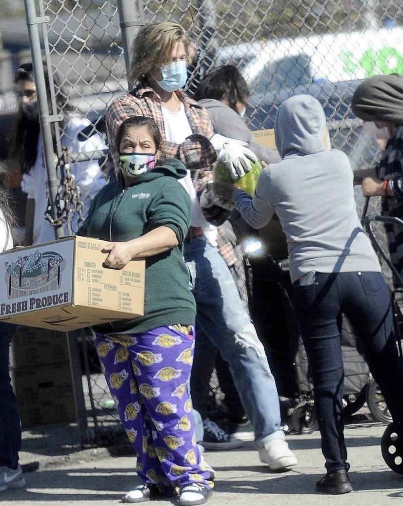 Πολύς κόσμος περίμενε υπομονετικά την σειρά του για να παραλάβει τρόφιμα από το φορτηγό που ο ίδιος οδήγησε και ξεφόρτωνε για ώρες. Λόγω της μάσκας προστασίας πολλοί δεν κατάλαβαν αμέσως ποιος ήταν.