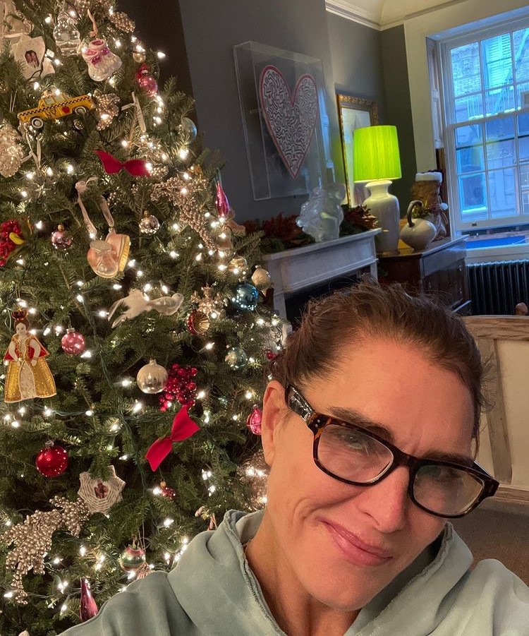 Η Μπρουκ Σιλντς γέμισε το σπίτι της γιρλάντες από φυσικό έλατο, τις γέμισε με λαμπιόνια και δημοσίευσε τις φωτογραφίες στο instagram για να στείλει παντού τις ευχές της για χρόνια πολλά. Η ίδια φωτογραφήθηκε μπροστά στο τεράστιο Χριστουγεννιάτικο δέντρο δίπλα στο τζάκι του καθιστικού της, άβαφτη αλλά πανέμορφη όπως πάντα.
