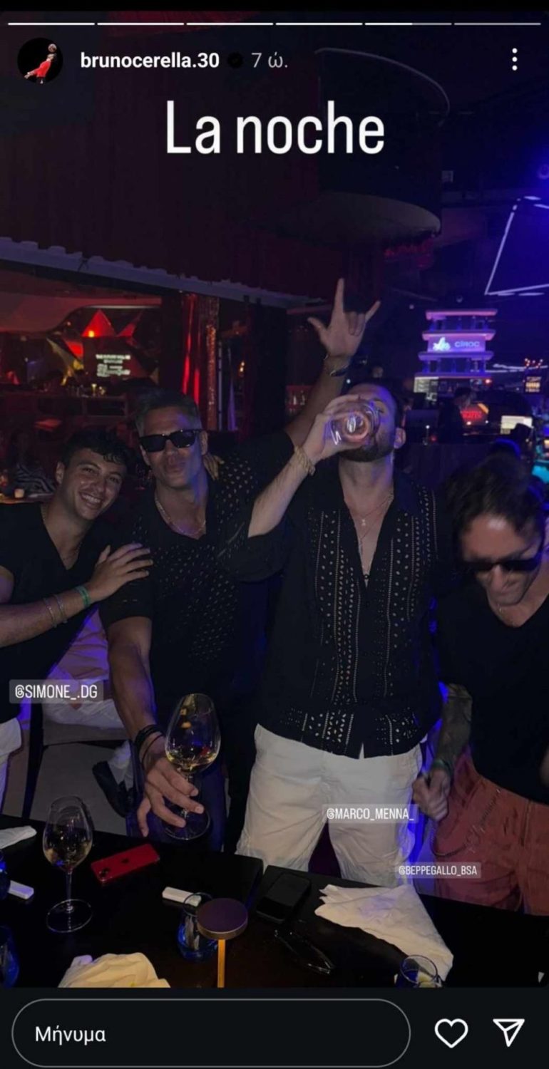 Ενώ, ο Μπρούνο Τσερέλα ανέβασε φωτογραφίες από το πάρτι γενεθλίων του στις οποίες ποζάρει με τους φίλους του.