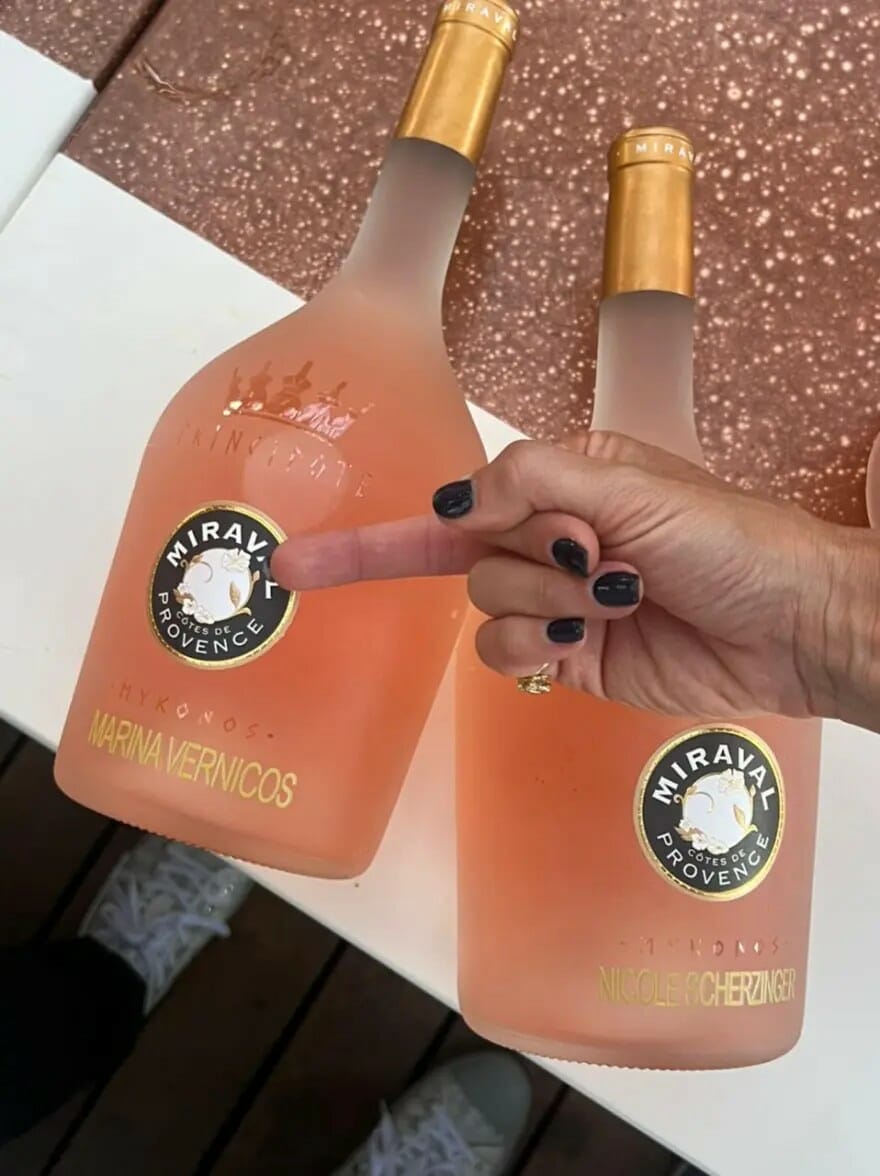 Τις δυο τους περίμεναν φιάλες Miraval, στις οποίες είχαν χαραχθεί τα ονόματα τους.