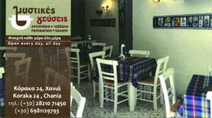 Κόρακα 24, Χανιά, τηλ.: 28210 71450, 6981 129793