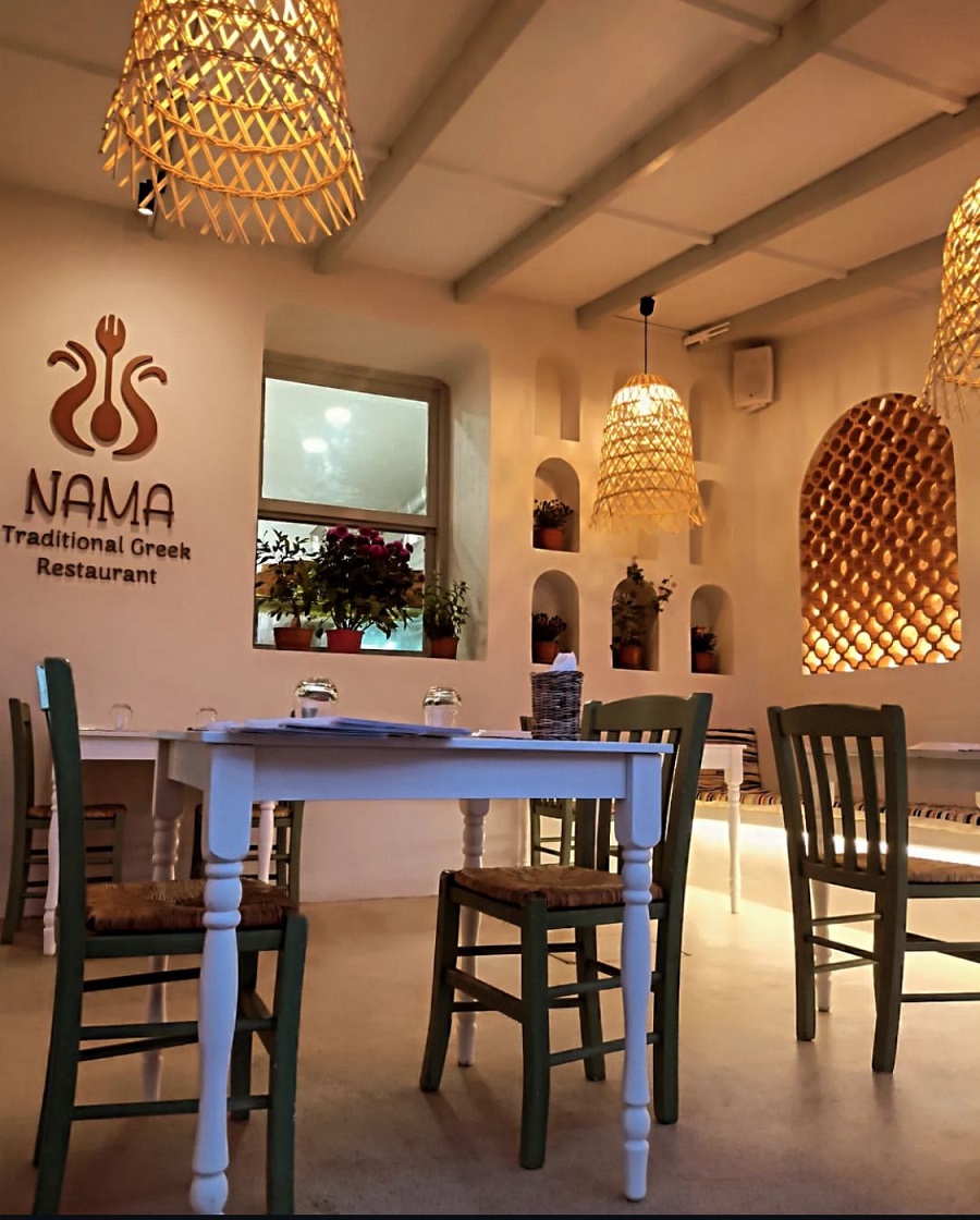 Ανακαλύψτε την αυθεντική γεύση της Ελλάδας στο εστιατόριο Νάμα, με την μαγευτική θέα στην καταγάλανη θάλασσα. Σε έναν χώρο όπου το παραδοσιακό συναντά το μοντέρνο, θα έχετε την ευκαιρία να απολαύσετε μαμαδίστικο φαγητό, όπως μουσακά, μακαρονάδα του ψαρά με φρέσκα μύδια, χταπόδι, καλαμάρι, γαρίδες, μπακαλιάρο σκορδαλιά χειροποίητα ντολμαδάκια, γεμιστά και ολόφρεσκα παιδάκια αρνίσια, τα οποία μπορείτε να τα συνοδεύεστε με εξαιρετικά κρασιά.
